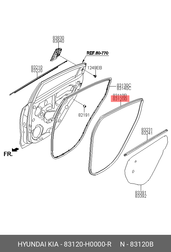 83120H0000R HYUNDAI KIA Уплотнитель проема задней правой двери