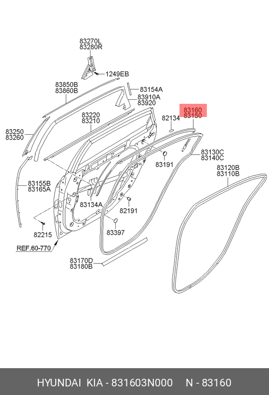831603N000 HYUNDAI KIA Молдинг HYUNDAI Equus (09-16) двери задней OE