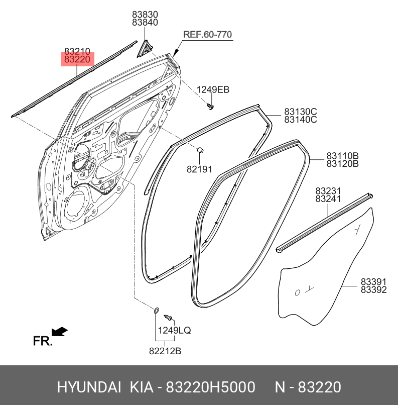 83220H5000 HYUNDAI KIA Уплотнитель стекла HYUNDAI Solaris (17-) двери задней правой наружный ОЕ