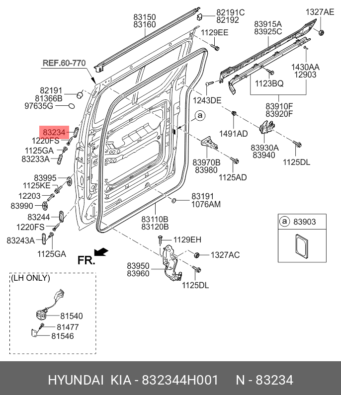 832344H001 HYUNDAI KIA Ограничитель двери HYUNDAI Starex H-1 (07-15) сдвижной OE
