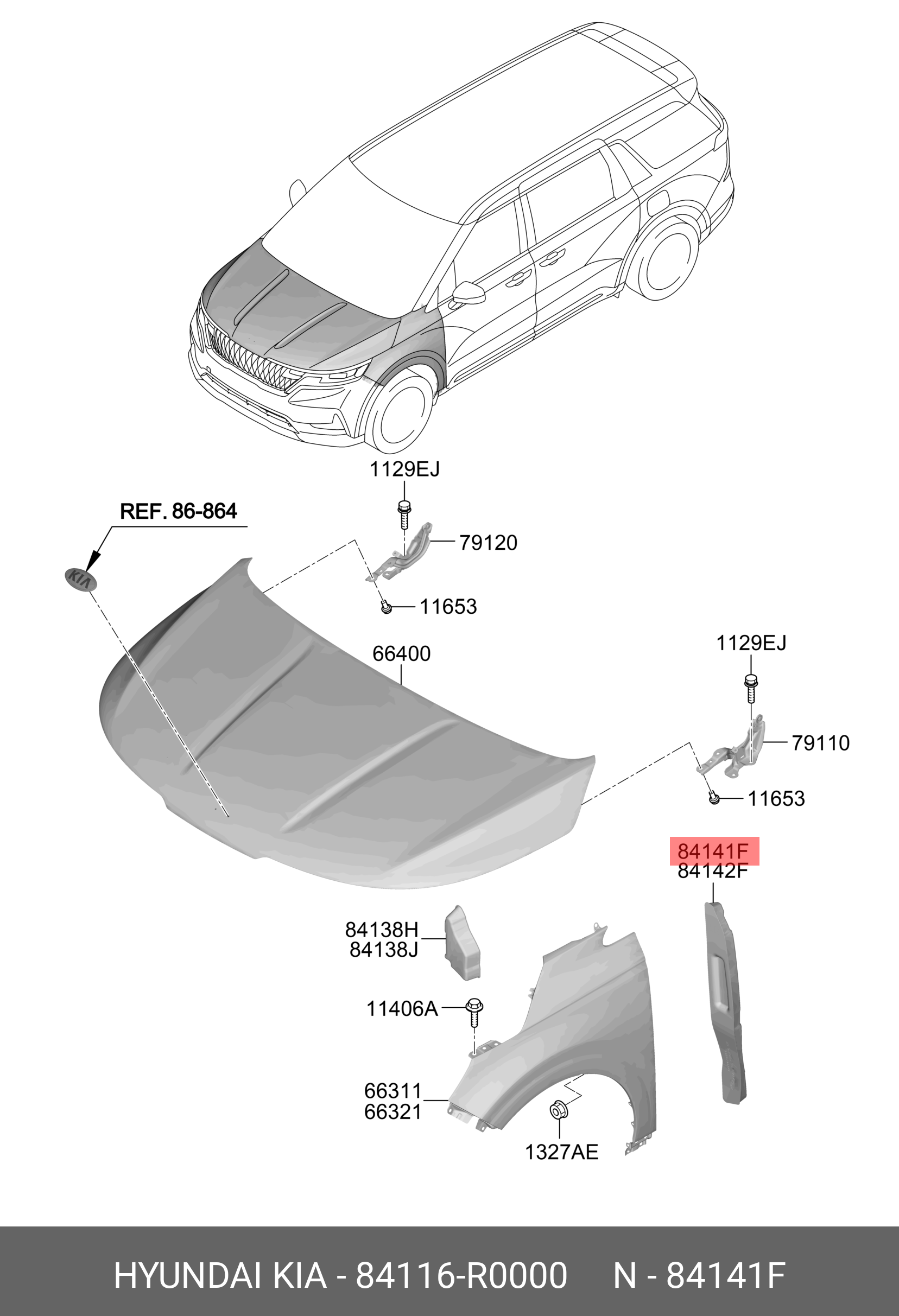 84116R0000 HYUNDAI KIA УПОРНАЯ ПЛАНКА КРЫЛА 84116-R0000