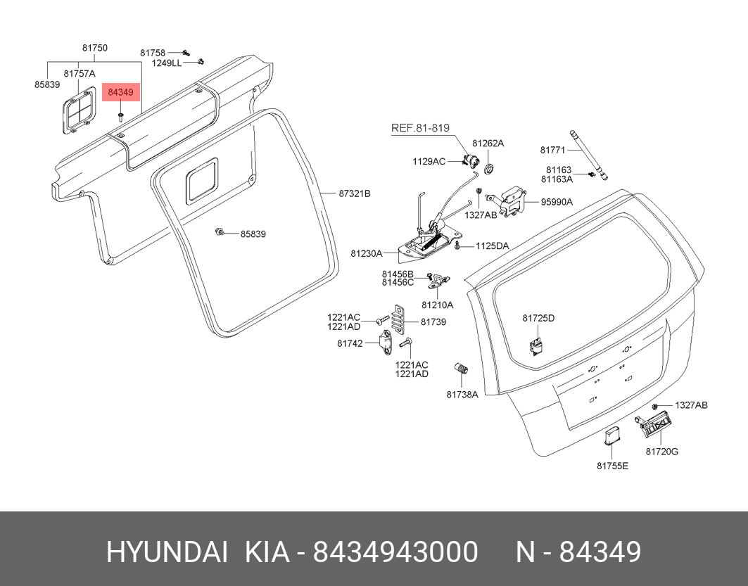 8434943000 HYUNDAI KIA Пистон HYUNDAI HD65,72,78 обшивки OE