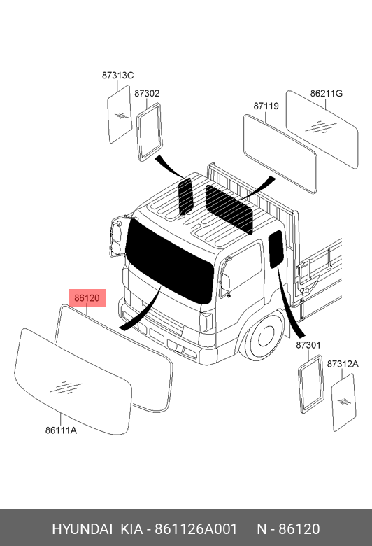 861126A001 HYUNDAI KIA Уплотнитель стекла HYUNDAI HD120 ветрового OE