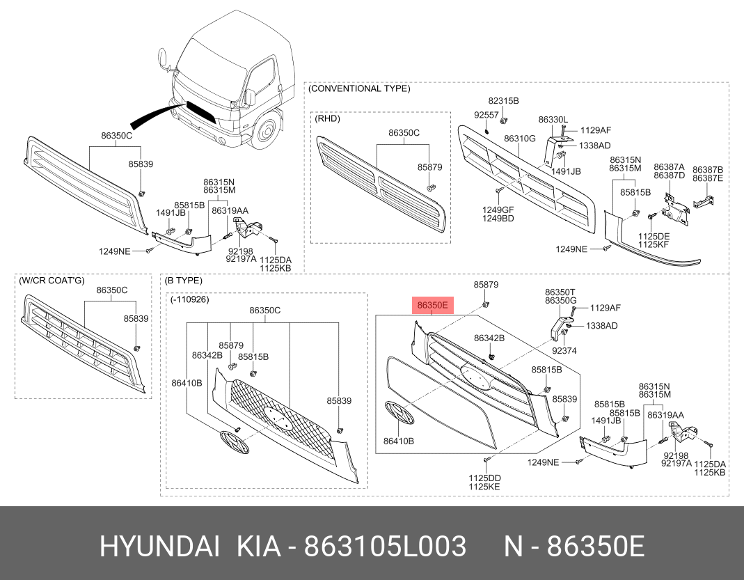 863105L003 HYUNDAI KIA Облицовка радиатора HYUNDAI HD65,78 (13-) OE