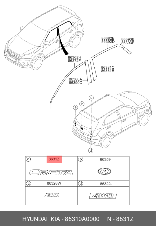 | Наименование | ЭМБЛЕМА ДЕКОРАТИВНАЯ ПЛАСТИКОВАЯ CRETA 86310-A0000 |