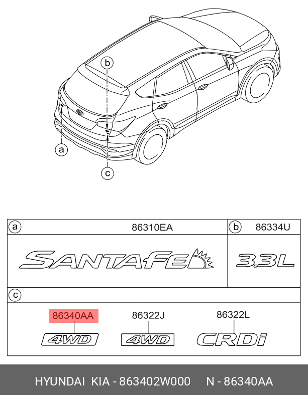 863402W000 HYUNDAI KIA Эмблема HYUNDAI Santa Fe (12-) надпись "4WD" OE