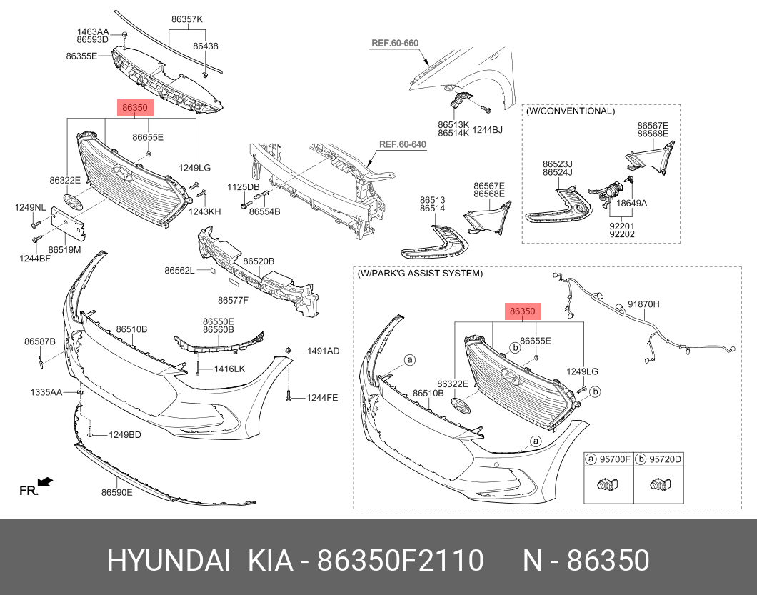 86350F2110 HYUNDAI KIA Решетка радиатора HYUNDAI Elantra (16-) OE