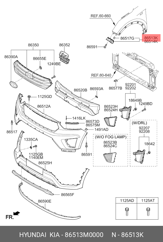 86513M0000 HYUNDAI KIA Кронштейн бампера HYUNDAI Creta (16-) переднего левый OE