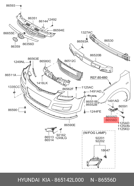 865142L000 HYUNDAI KIA Кронштейн бампера HYUNDAI i30 (07-) переднего правый OE