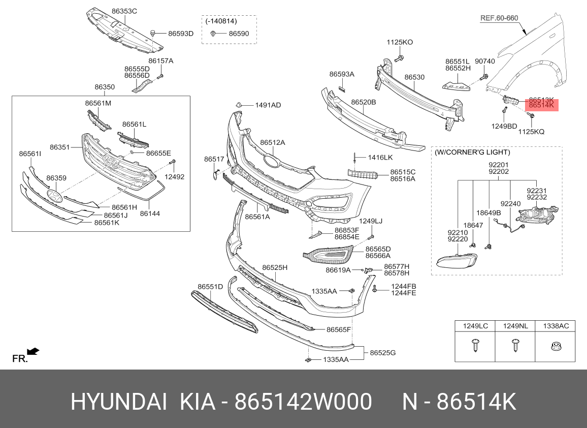 865142W000 HYUNDAI KIA Направляющая HYUNDAI Santa Fe (12-) бампера переднего правая OE