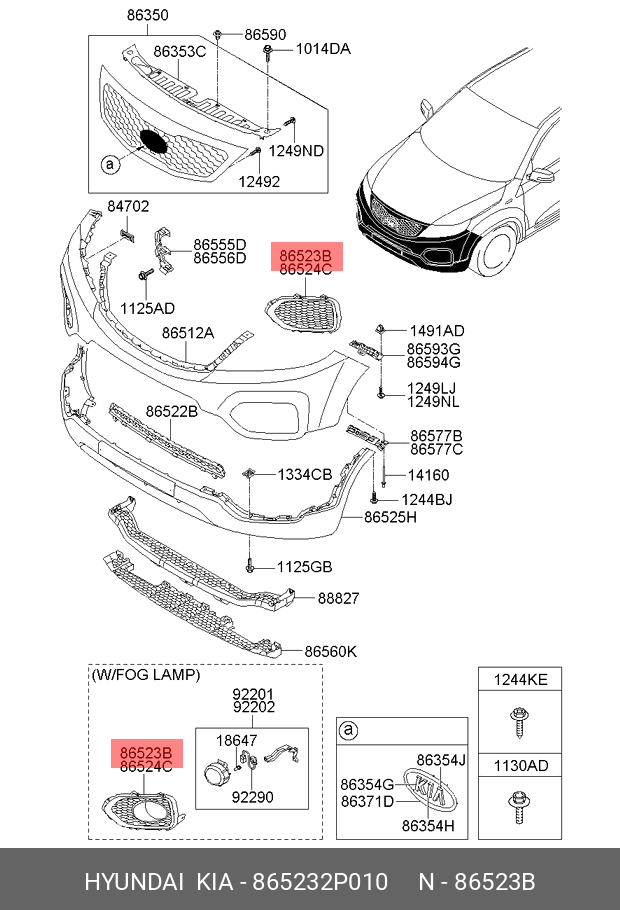 865232P010 HYUNDAI KIA Решетка фары противотуманной KIA Sorento (09-) левой OE