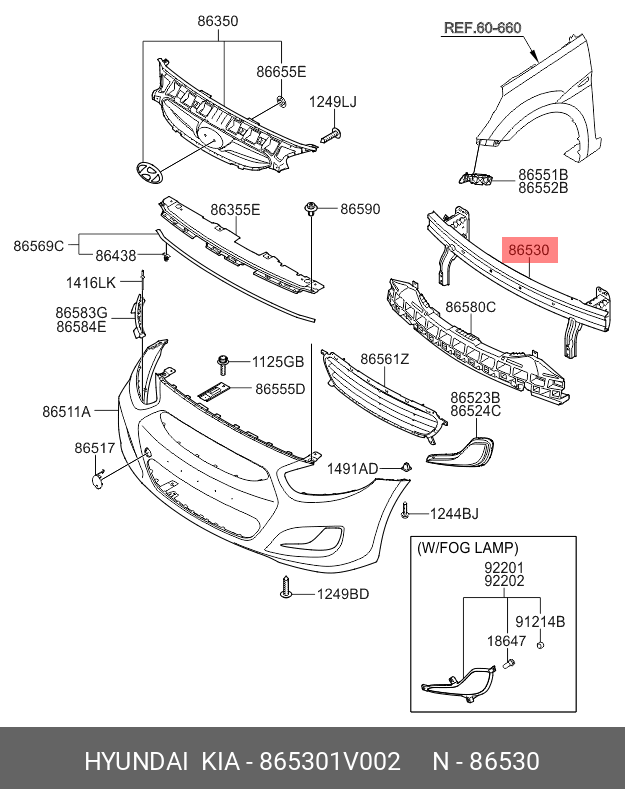 865301V002 HYUNDAI KIA УСИЛИТЕЛЬ БАМПЕРА [ORG]