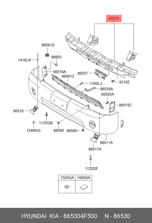 865304F500 HYUNDAI KIA Усилитель бампера HYUNDAI Porter 2 (12-) переднего OE