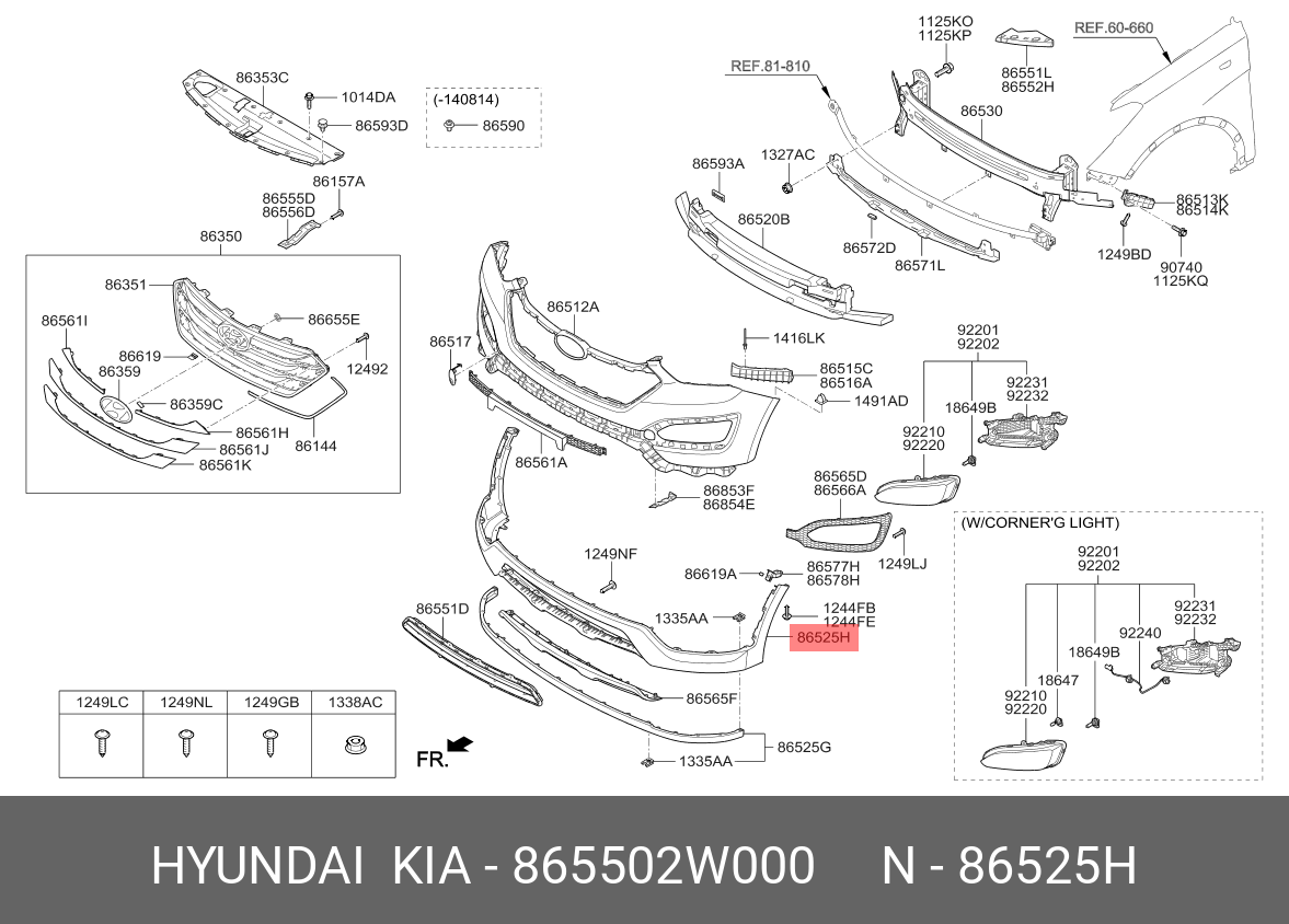 865502W000 HYUNDAI KIA Бампер HYUNDAI Santa Fe (12-) передний (нижняя часть) OE