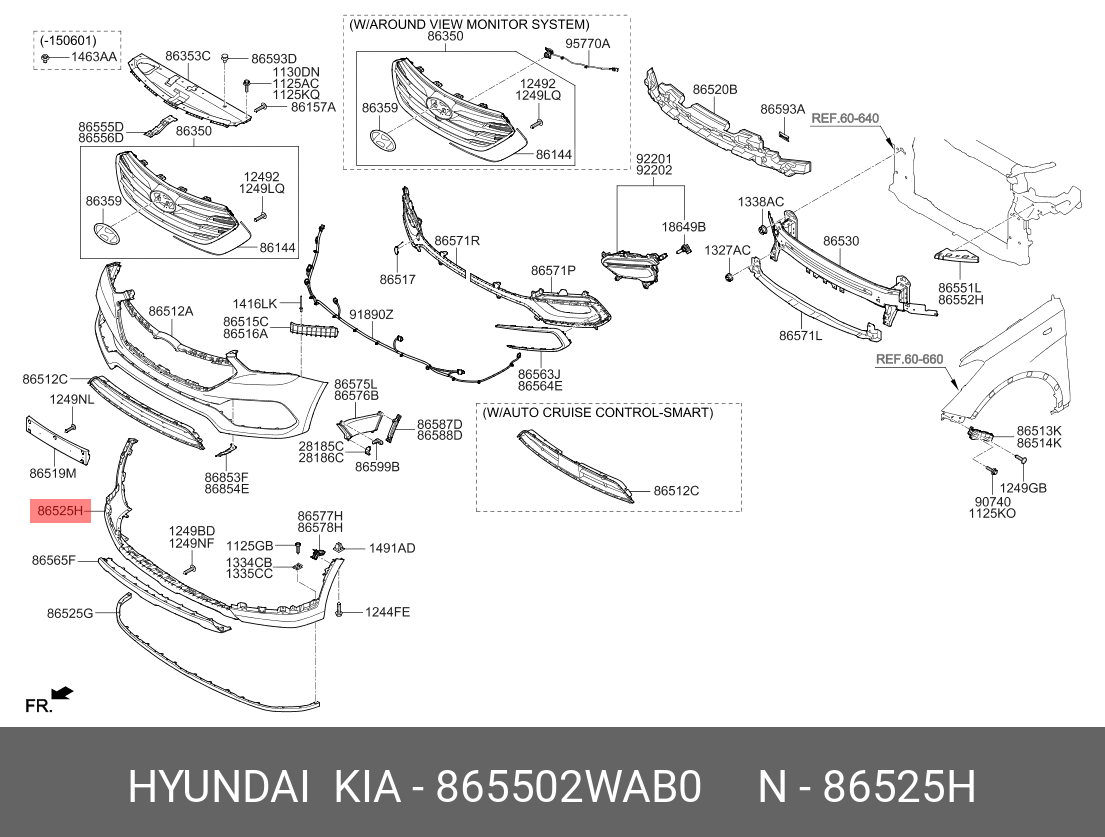 865502WAB0 HYUNDAI KIA Бампер HYUNDAI Santa Fe (15-) передний (нижняя часть) (RPAS) OE