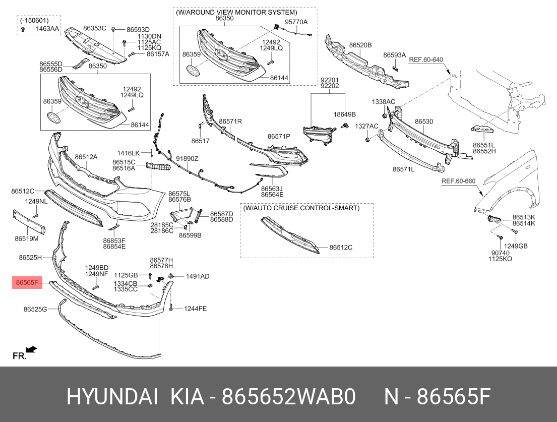 865652WAB0 HYUNDAI KIA Накладка бампера HYUNDAI Santa Fe (17-) переднего нижняя OE