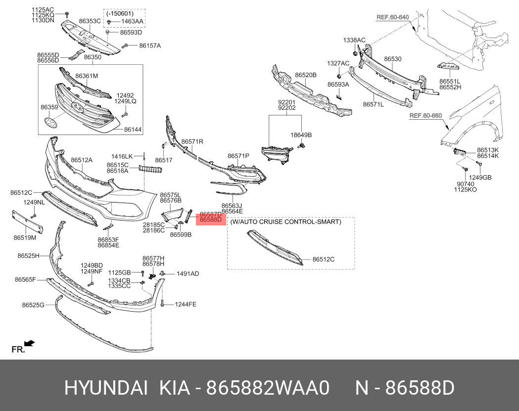 865882WAA0 HYUNDAI KIA Кронштейн бампера HYUNDAI Santa Fe (15-) переднего правый OE