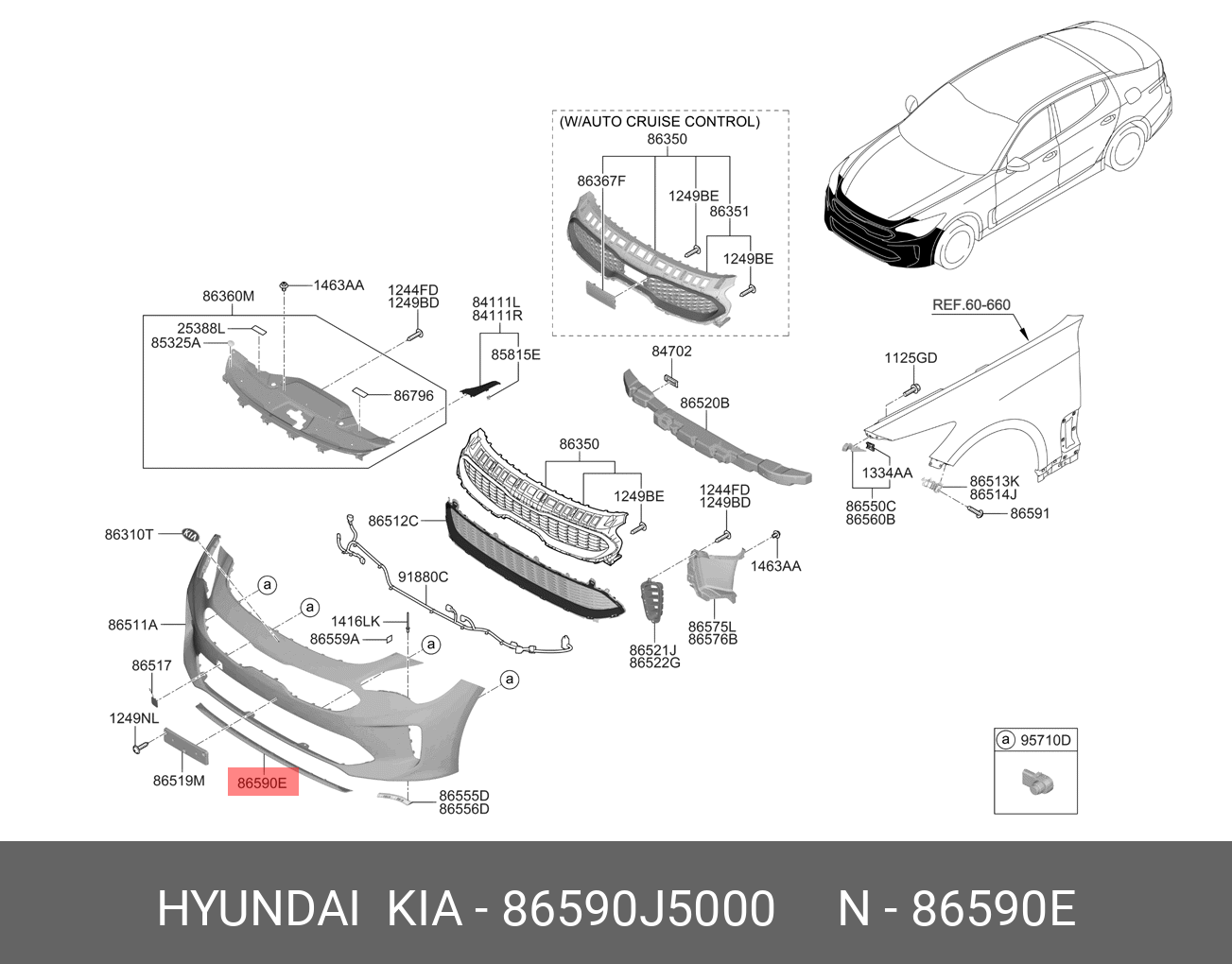86590J5000 HYUNDAI KIA Накладка бампера KIA Stinger (20-) переднего OE
