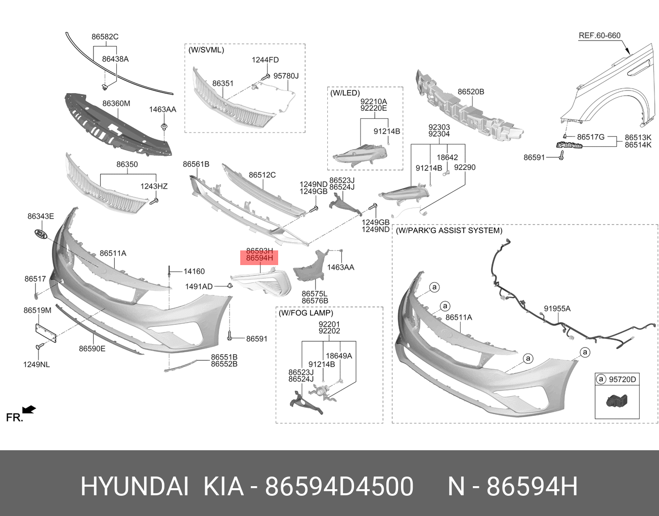 86594D4500 HYUNDAI KIA Рамка KIA Optima (18-) фары противотуманной правой OE