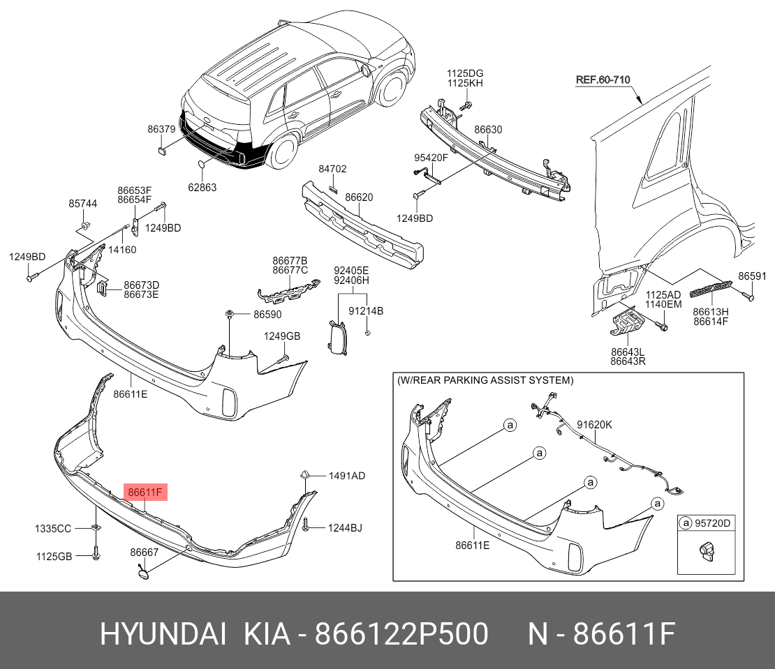 866122P500 HYUNDAI KIA Спойлер бампера KIA Sorento (12-) заднего OE