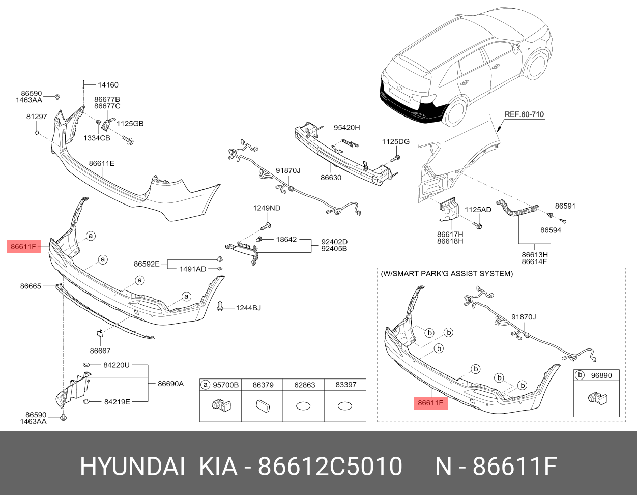 86612C5010 HYUNDAI KIA Накладка бампера KIA Sorento (15-) заднего (A TYPE) OE
