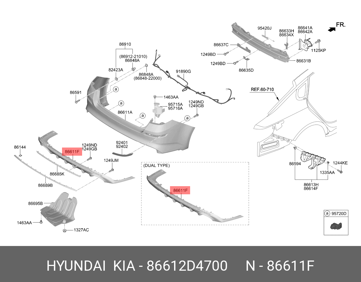 86612D4700 HYUNDAI KIA Накладка бампера KIA Optima (18-) заднего (GLOSSY BLACK) OE