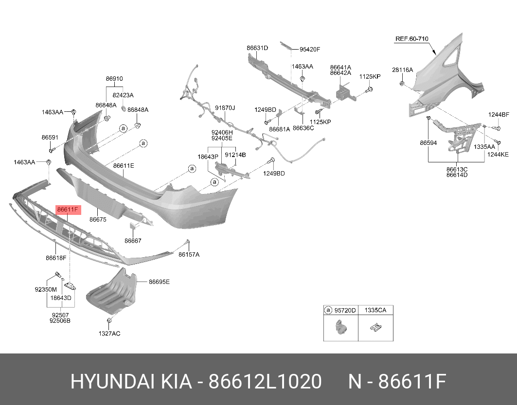 86612L1020 HYUNDAI KIA Накладка бампера HYUNDAI Sonata (19-) заднего (B TYPE) OE