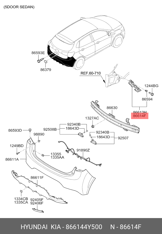 866144Y500 HYUNDAI KIA Кронштейн бампера KIA Rio (11-) заднего правый OE