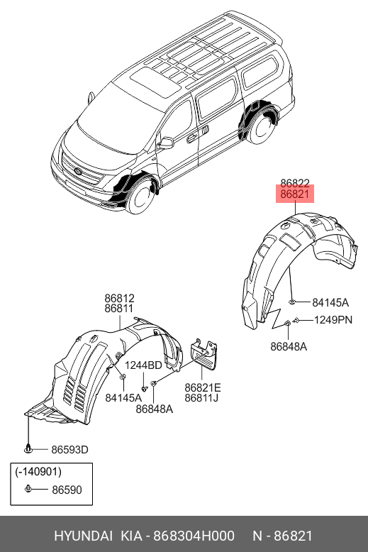 868304H000 HYUNDAI KIA Подкрылок HYUNDAI Starex H-1 (06-) задний левый OE