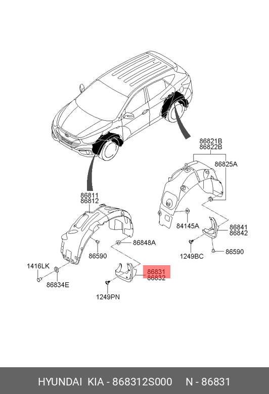868312S000 HYUNDAI KIA Брызговик HYUNDAI ix35 (10-) передний левый OE
