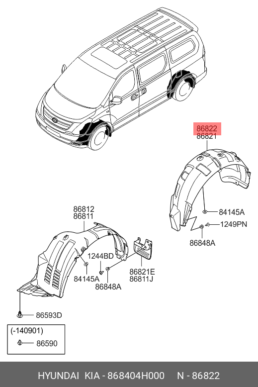 868404H000 HYUNDAI KIA Подкрылок HYUNDAI Starex H-1 задний правый OE