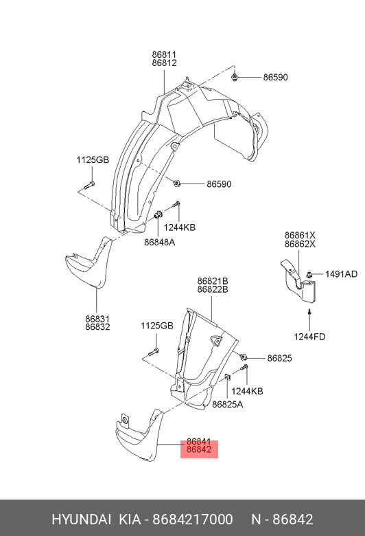 8684217000 HYUNDAI KIA Брызговик правый 86842-17000