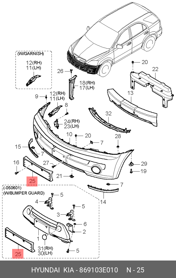 869103E010 HYUNDAI KIA Накладка бампера KIA Sorento (02-06) переднего (под номерной знак) OE