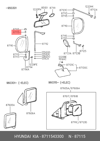 8711543300 HYUNDAI KIA ВТУЛКА СТОЙКИ ЗЕРКАЛА ЗАДНЕГО ВИДА