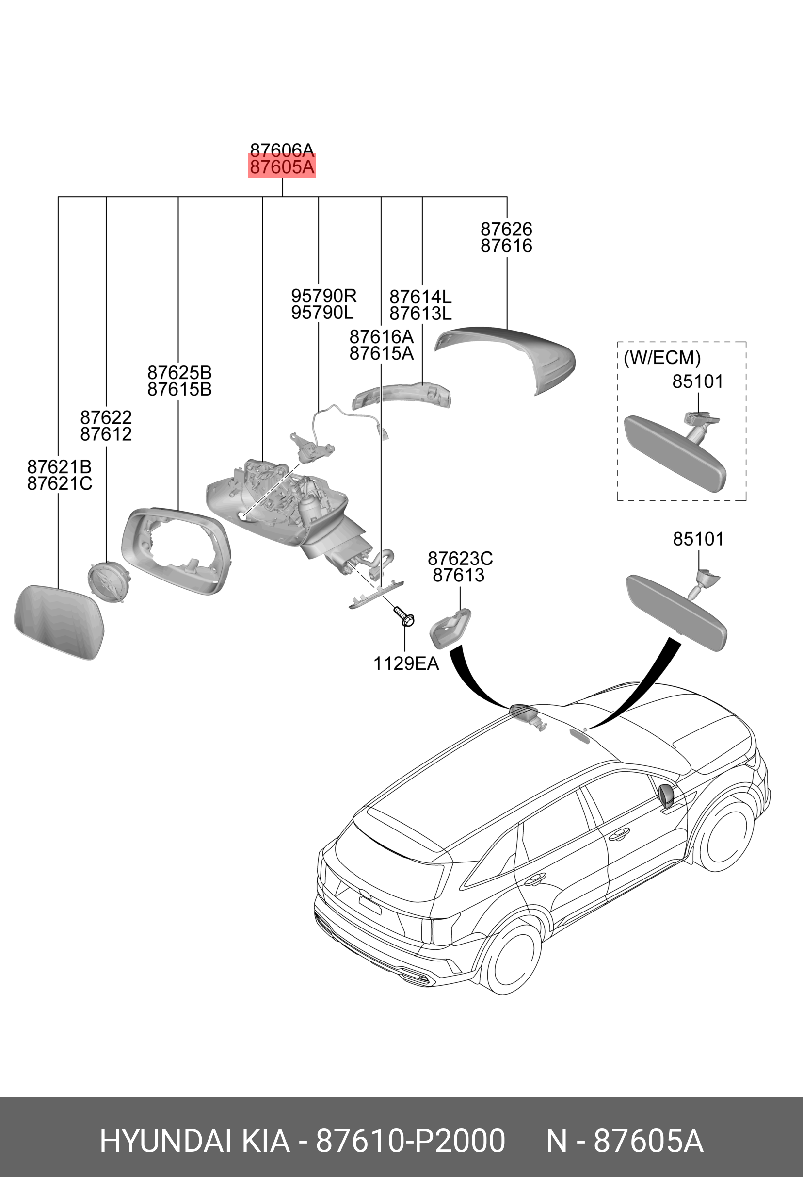 87610P2000 HYUNDAI KIA Зеркало левое