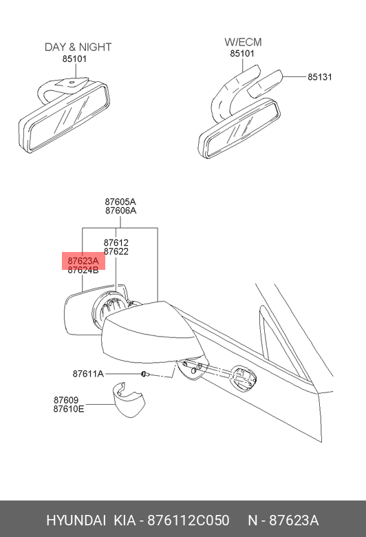 876112C050 HYUNDAI KIA Зеркало, лев