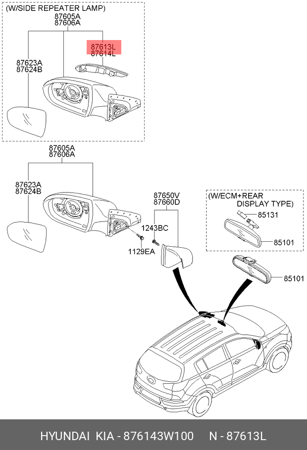 876143W100 HYUNDAI KIA Повторитель поворота KIA Sportage (10-) левый (в зеркало) OE