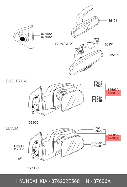 | Наименование | Зеркало двери в сборе 87620-2E560 |