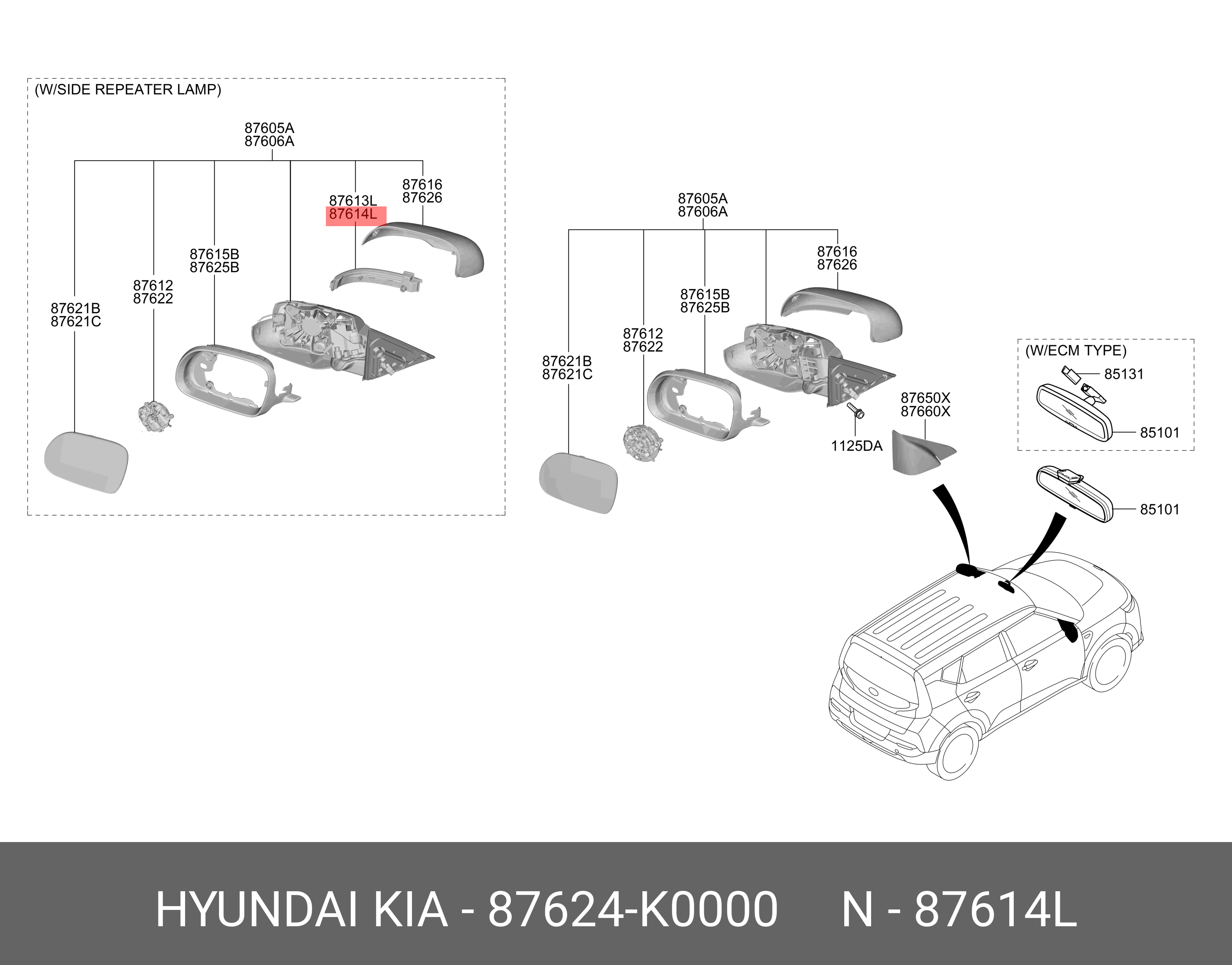 87624K0000 HYUNDAI KIA Повторитель поворота KIA Soul (19-) правый (в зеркало) OE