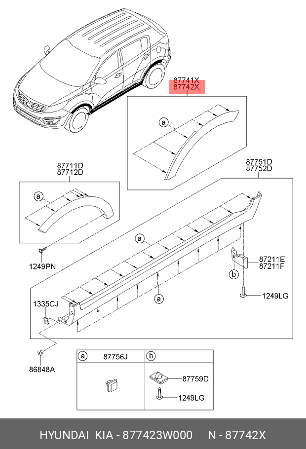 877423W000 HYUNDAI KIA Молдинг крыла KIA Sportage (10-) заднего правого OE