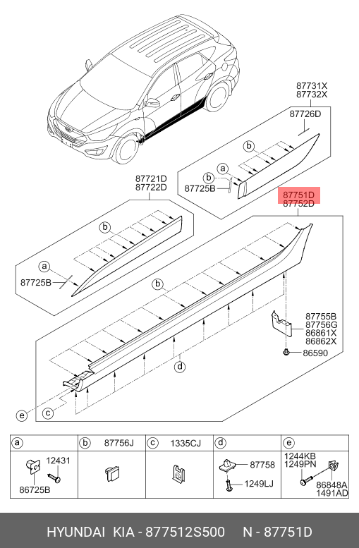 877512S500 HYUNDAI KIA Накладка порога HYUNDAI ix35 (10-) левого наружная OE