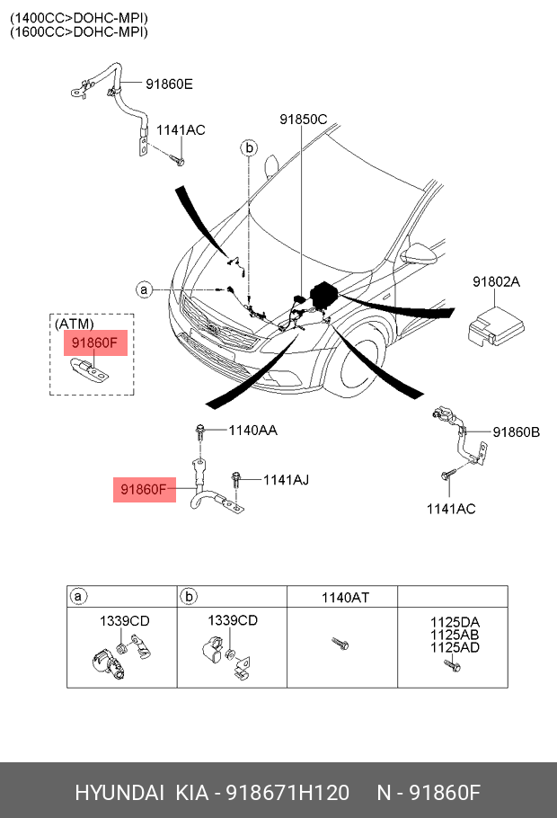 918671H120 HYUNDAI KIA 918671H120 WIRING ASSY-T/M GND