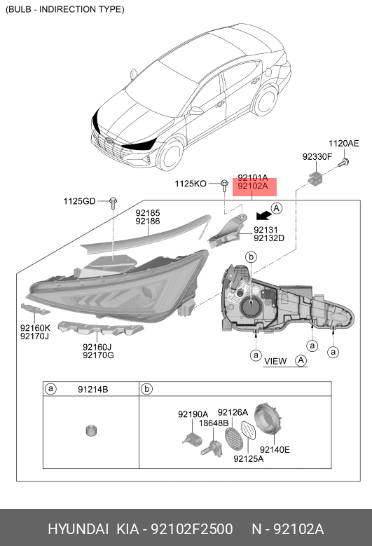 92102F2500 HYUNDAI KIA Фара HYUNDAI Elantra (19-) правая OE