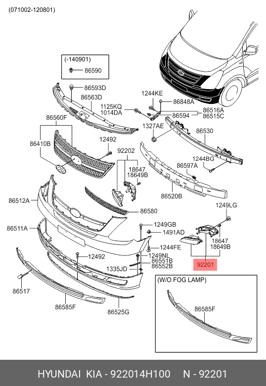 922014H100 HYUNDAI KIA Фара противотуманная HYUNDAI Starex H-1 (15-) левая OE