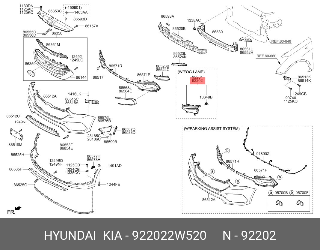 922022W520 HYUNDAI KIA Фара противотуманная HYUNDAI Santa Fe (15-) правая (A TYPE)