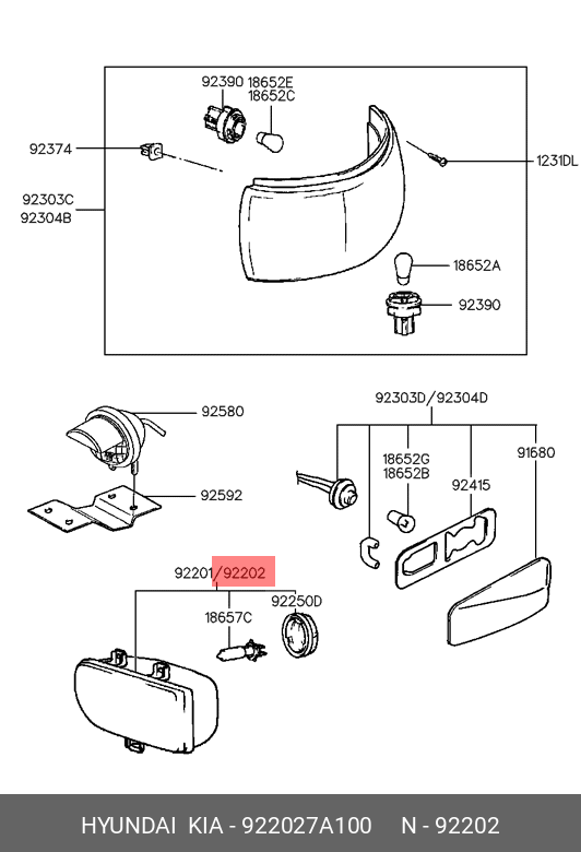 922027A100 HYUNDAI KIA Фара противотуманная HYUNDAI HD160,170,260,270,450 (-08) правая OE