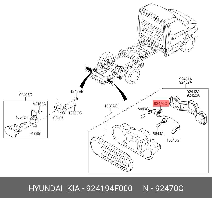 924194F000 HYUNDAI KIA Проводка HYUNDAI Porter 2 жгут проводов фонарей задних (внутренняя) OE