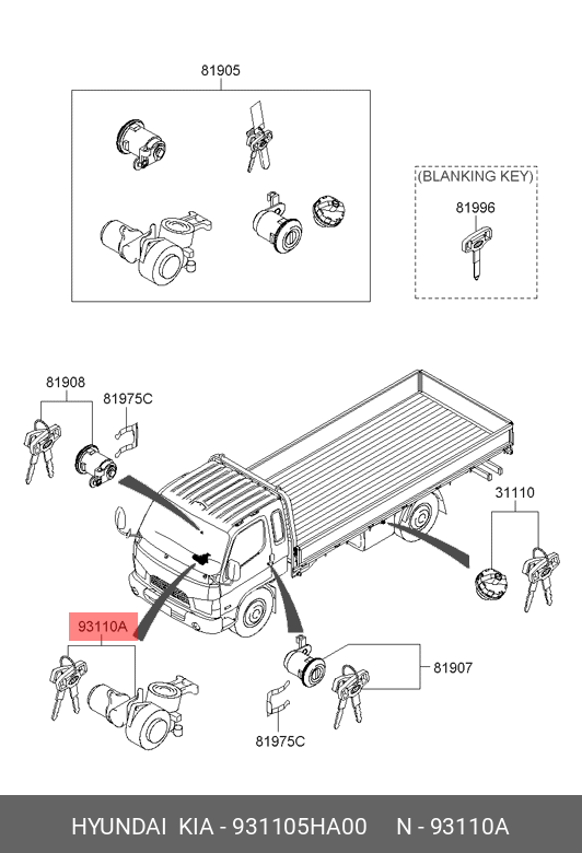 931105HA00 HYUNDAI KIA Замок зажигания HYUNDAI HD65,72,78,County OE