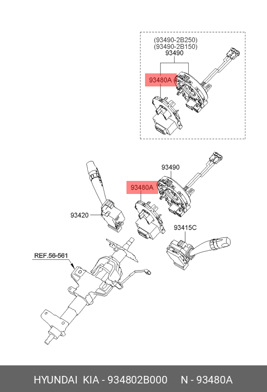 934802B000 HYUNDAI KIA Датчик HYUNDAI Santa Fe (05-) угла поворота руля OE