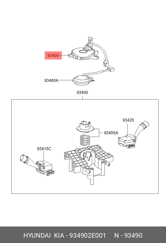 934902E001 HYUNDAI KIA Кольцо HYUNDAI Tucson (04-) колеса рулевого контактное OE